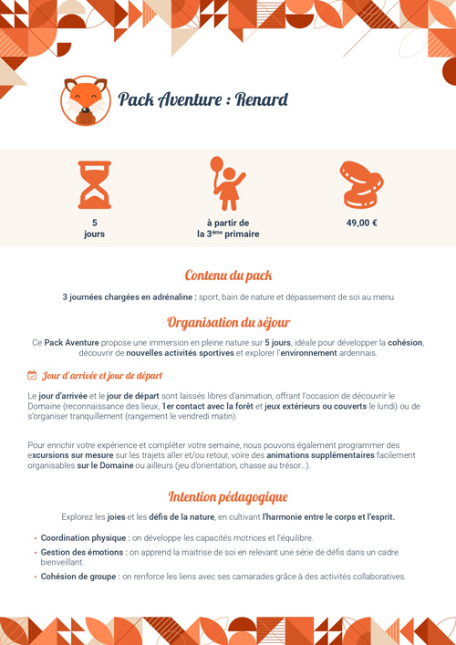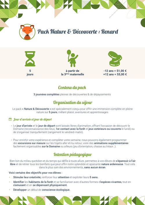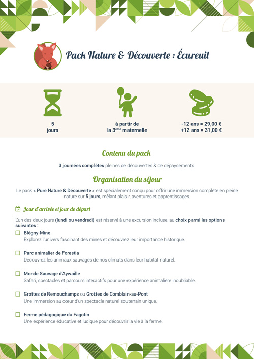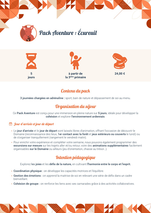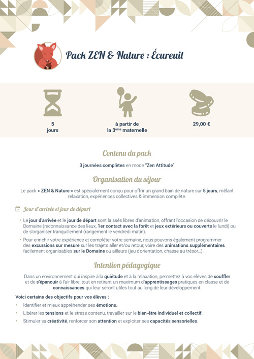 - éveil/sensibilisation à la nature et au sport,