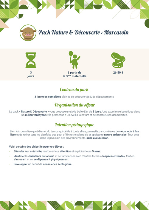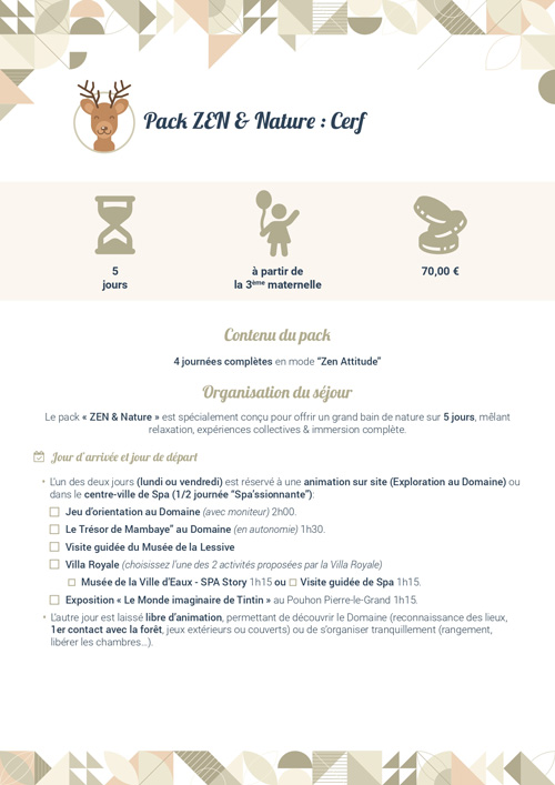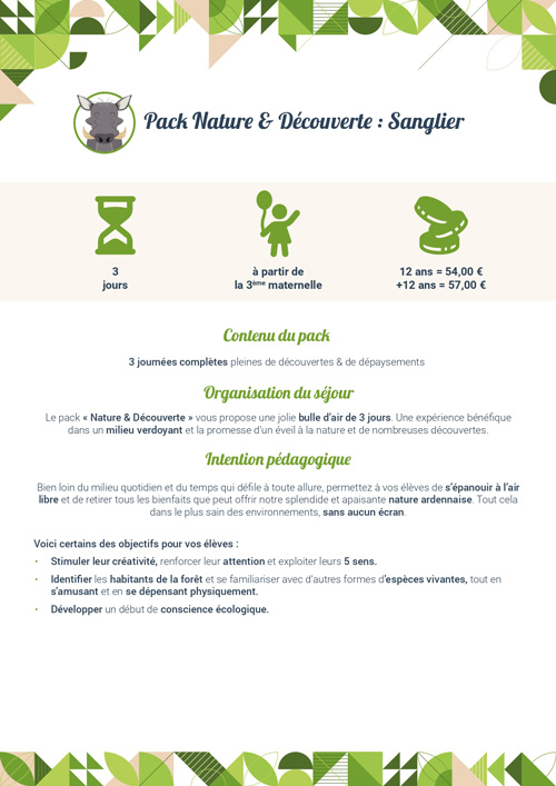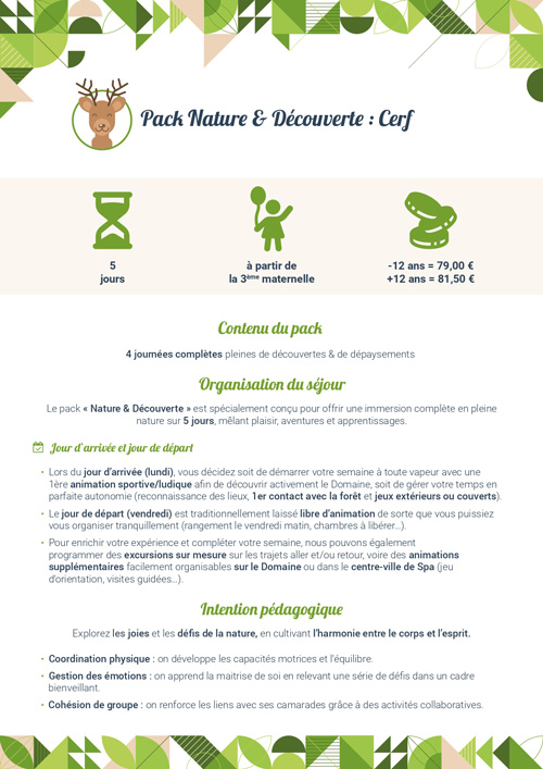 Renommée pour la qualité et le sérieux des activités qu’elle propose, l’ASBL E.N.A.S.C. organise des classes vertes au Domaine de Mambaye. Nous accueillons, à partir de 2 jours/1 nuit, des écoles maternelles, des écoles primaires et des écoles secondaires.